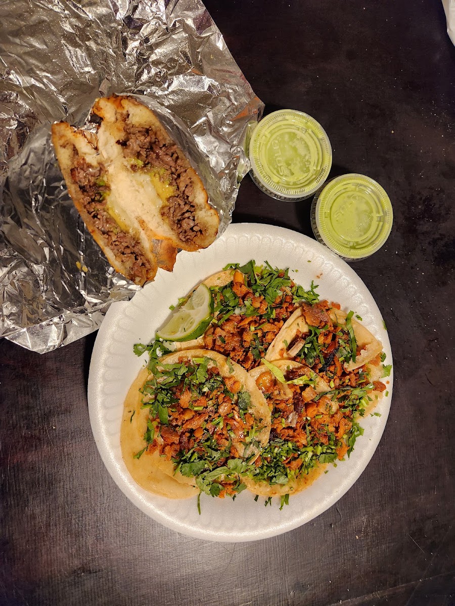 I ordered 4 al pastor tacos and 1 asada torta. Paid $16 in total. The tacos and tortas are small. The torta comes with cheese, lettuce and avocado. The green sauce is good. We got there at 7:40pm, placed our order at 7:44pm and got our food at 7:50pm on a Friday. The food was really good.